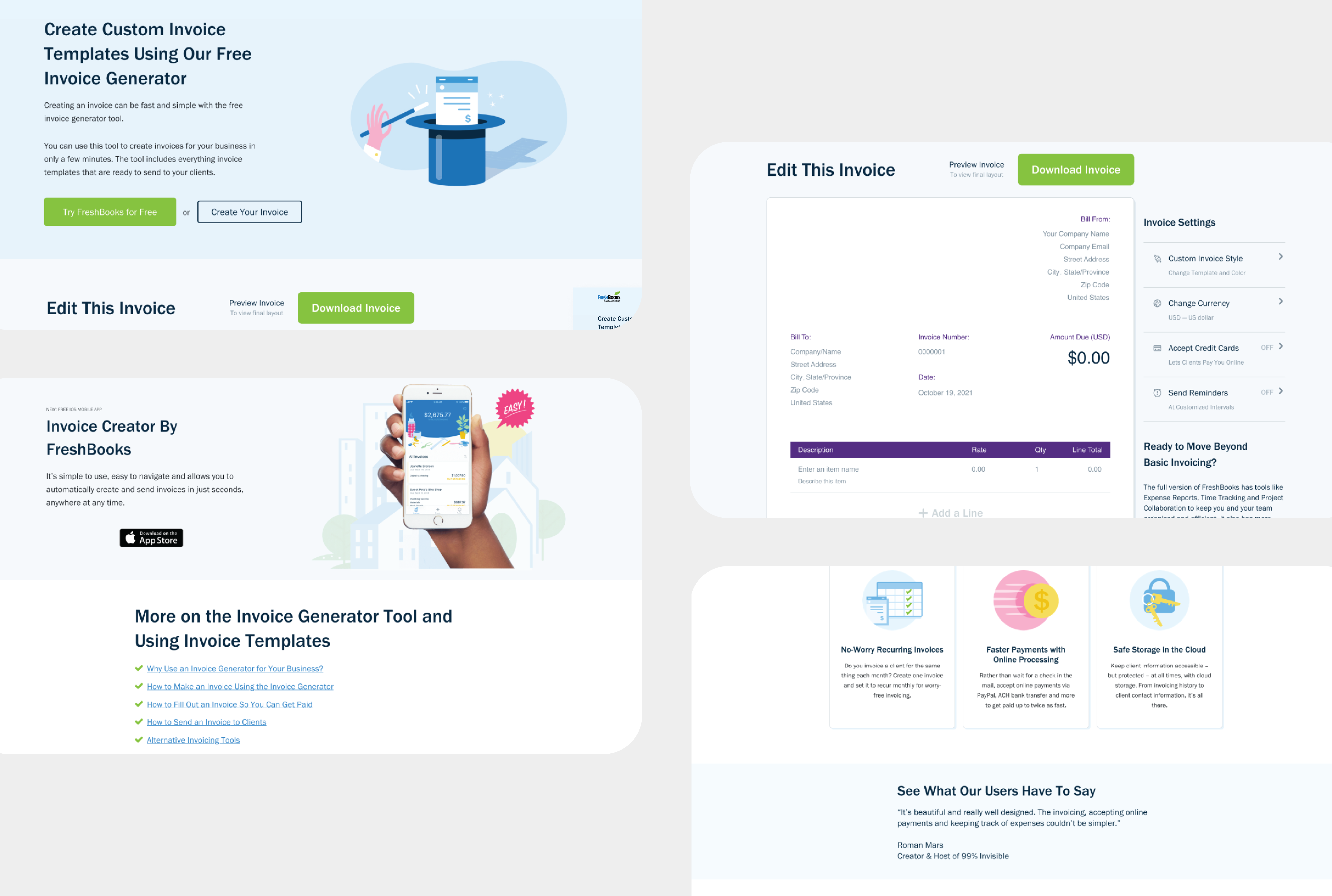 We were able to align the new invoice generator experience with FreshBooks core platform. We gave end-users the option to efficiently preview and generate PDFs in real-time, without having to commit to an account.